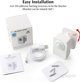 Sensore di movimento intelligente WiFi, rilevatore di movimento PIR, sensore a infrarossi con APP in tempo reale, campo di rilevamento di 128°, alimentazione doppia USB e batteria