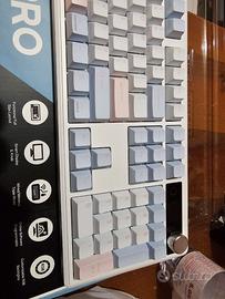 Specifiche tecniche Marca EPOMAKER Modello Tastiera meccanica TH108 V2 PRO di dimensioni standard Disposizione Tastiera da gioco a grandezza naturale al 100%. Numero di chiavi 104 chiavi Schermo Schermo in vetro Manopola Modalità di controllo del volume o dello schermo. Premere FN+manopola per cambiare modalità. Batteria Batteria ricaricabile da 10000 mAh Connettività Wireless a 2,4 GHz, Bluetooth, cavo USB Compatibilità Mac/Windows/Android Altezza (lato barra spaziatrice) 28 mm (compresi i copritasti), 20 mm (senza copritasti) Altezza (lato ESC) 42 mm (compresi i copritasti), 34 mm (senza copritasti) Cavalletto Sì, la TH108 V2 PRO è dotata di un supporto regolabile in due posizioni e offre tre angolazioni di digitazione. Angolo di digitazione 6 gradi, 8 gradi e 10,5 gradi. Materiale della custodia Plastica ABS spessa Materiale della piastra Plastica PC Taglio flessibile Sì, la TH108 V2 PRO ha una piastra flessibile in PC e una scheda PCB flessibile in FR4. Stabilizzatori La TH108 V2 PRO è dotata di stabilizzatori montati su piastra e finemente calibrati, e non è compatibile con stabilizzatori PCB o a vite. Struttura di montaggio Montaggio con guarnizione Attenuazione del suono 5 strati di isolamento acustico, tra cui schiuma sandwich PORON, cuscinetto per interruttori IXPE, PET per il miglioramento del suono, schiuma PORON e lattice per gli alloggiamenti degli interruttori e silicone sul fondo. Profilo dei tasti Tasti con profilo Cherry Materiale dei tasti Plastica PBT Tecnica di produzione dei tasti Doppio colpo Interruttore Interruttore meccanico lubrificato in fabbrica Sostituibile a caldo Sì, TH108 V2 PRO ha un PCB sostituibile a caldo ed è compatibile con interruttori meccanici a 5 pin. RGB LED orientati a sud, per ogni tasto Tasso di partecipazione al voto 1000 Hz in modalità USB e 2,4 GHz, e 125 Hz in modalità Bluetooth. Latenza 2 ms (USB), 5 ms (wireless a 2,4 GHz), 11 ms (Bluetooth) Anti-ghosting Sì, TH108 V2 PRO supporta il rollover N-key ed è anti-ghosti