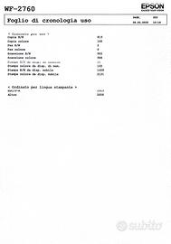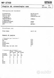 Vendo PER PEZZI DI RICAMBIO stampante Epson wf 2760 a causa di malfunzionamento della testina di stampa. La stampante é esteticamente usata ma senza grossi difetti da riportare, funziona lo scanner, il carrello dei fogli, il meccanismo ADF ed il display touch con relative schede. Il suo problema é che qualora si stampasse qualcosa, sia essa a nero o colori, la stampante lascia righe bianche, rendendola di fatto inutilizzabile. Prezzo €29 spedizione esclusa, venduta con confezione originale e cavo di alimentazione originale. Non si includono le cartucce. Nelle foto si possono vedere due copie della cronologia di stato, l’utile per capire che la stampante funziona. Per ulteriori info o foto non esitate a contattarmi.