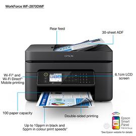 EPSON WorkForce WF-2870DWF stampante Multifunzione A4 (stampa, copia, scansione, Fax) ADF, USB, Wi-Fi, Direct, display LCD 6,1 cm, Smart Panel, fronte/retro, Nero ##Solo ritiro a mano ##