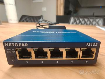 vendo Ethernet switch Netgear prosafe fast Ethernet switch FS105 nuovo perfettamente funzionante. è un moltiplicatore di porte LAN per internet.