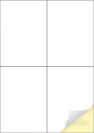 Etichette multiuso autoadesive, 4 etichette per foglio A4, 100 fogli, 105 x 148 mm, 400 etichette, etichette universali vuote, per stampanti laser e inkjet, bianco Un pacco da 100 fogli (400 etichette)= 8€ Ampia disponibilità, se si acquistano più pacchi possibile sconto.