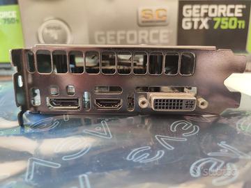 Vendo GTX 750 Ti della EVGA. La scheda si presenta in ottimo stato e perfettamente funzionante; è stata utilizzata per gaming leggero e lavoro, non ha mai dato nessun tipo di problema. Mai per mining e mai overclockata. Viene spedita nella scatola originale insieme a tutto il suo contenuto: - Gommini protettivi - Guida utente - Disco installazione dei driver - Adattatore DVI a VGA - Sticker e poster Vendo per passare ad una scheda video più potente.