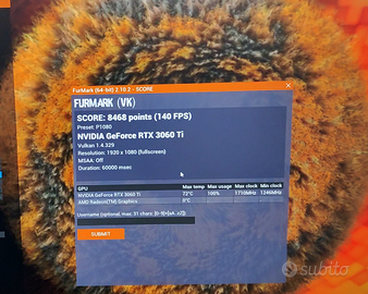 Scheda grafica 3060Ti perfettamente funzionante, in buone condizioni Adatta a 1080p ultra o 1440p con DLSS4. Migliore di RTX 2080 Super, RTX 4060, RTX 5050 o RX 6700 XT L'ultima foto mostra Furmark 2. È possibile confrontare il risultato con la tabella ufficiale online. Posso mostrare un video del test come prova del funzionamento della scheda. Manutenzione già eseguita. Non serve cambiare pasta termica o pads. PREZZO NON TRATTABILE