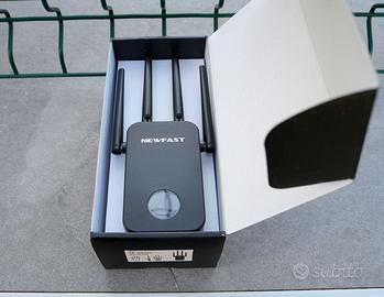 Vendo e testato solo l'utilizzo per questo extender o amplificatore di segnale WiFi NEWFAST, completo di confezione e accessori.