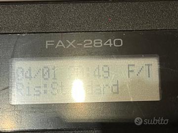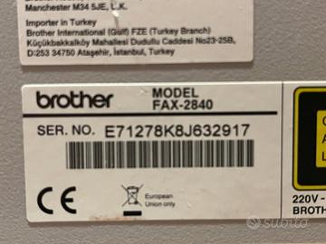 BROTHER FAX-2840 STAMPANTE LASER MONOCROMATICA FAX A4-A5-A6 / 324 PAGINE 324 PAGINE TOTALI TONER 50% ---------------------------------- SCHEDA TECNICA Print technology * Laser Colour faxing * No Modem speed * 33.6 Kbit/s Fax resolution modes Fine, Photo, Standard, Super fine Fax transmission speed 2.5 sec/page Error Correction Mode (ECM) Yes Fax coding methods JBIG, MH, MMR, MR Fax compatibility ITU-T G3 Fax delayed sending Yes Fax forwarding Yes Fax dual access Yes Fax broadcasting 272 locations Fax speed dialing (max numbers) 200 Auto-redialing Yes Auto reduction Yes Group dial 8 One-touch dials 22 Distinctive ring Yes Out-of-paper reception 400 pages Answering machine Answering machine * No Copying Copy function * Yes Maximum copy resolution 300 x 600 DPI Copy speed (black, normal quality, A4) 20 cpm Maximum number of copies 99 copies Copier resize 25 - 400% N-in-1 copy function (N=) 2, 4 Greyscale levels 256 Paper handling Maximum standard media size * A4 ISO A-series sizes (A0...A9) A4, A5, A6 Paper handling Supported media weight(s) 60 - 105 g/m² Input & output capacity Standard input capacity 250 sheets Auto document feeder (ADF) input capacity 20 sheets Standard output capacity 100 sheets Display Display LCD TFT Display number of lines 2 lines Display number of characters 16 Processor Processor family ARM9 Processor frequency 200 MHz Memory Maximum internal memory 16 MB Fax memory 400 pages Technical details Product colour Black, Grey Sustainability certificates ENERGY STAR Sound emission Noise level 53 dB Noise level (idle) 30 dB Weight & dimensions Dimensions (WxDxH) 368 x 360 x 311 mm Weight 9 kg Power Power consumption (typical) 365 W Power consumption (standby) 55 W Power consumption (PowerSave) 1.5 W AC input voltage 220-240 V AC input frequency 50 - 60 Hz