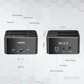 FIDECO Docking Station per disco rigido USB 3.0 a SATA HDD esterno doppio slot come nuovo spedizione disponibile no perditempo