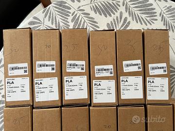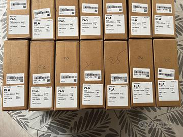 Vendo per passaggio ad altra stampante 20 kg di filamento PLA basic marca Anycubic 1.75mm. Ogni scatola ha la sua bobina in plastica. Li ho aperti, testati e richiusi (sono tutti aperti, tranne una bobina di bianco). Colori come da foto. Ritiro a mano o spedizione a carico dell'acquirente. Per qualsiasi info o altre foto, contattatemi pure.