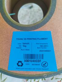 Vendo filamento YOUSU per stampante 3D, nuovo e in ottime condizioni. - Materiale: PLA - Diametro: 1.75 mm - Peso: 1 kg - Colore: Opalux(A) 6 colori