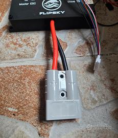 Firmware: V1.2 (aggiornamento firmware Flipsky ESC Tool) Tensione: 14-84 V (sicurezza per 4S-20S) Corrente continua: 100 A / Singolo; 200 A / Doppio (valvole dependenza il montaggio e la temperatura ambiente attorno al dispositivo!) Corrente di picco: 250 A / Singolo; 500 A / Doppio Porte di comunicazione: USB, CAN, UART, PPM, ADC Supporto segnali di ingresso: PPM, ADC, UART (compatibile con il telecomando FLIPSKY VX4 e VX3Pro solo in presente) Supporto modalità di avvio: IPDS (senza sensore), HFPI (senza sensore), HALL (sensored) BEC: 5V@1A Livelli di marcia a velocità multipli: bassi, medi, alti, invertiti Luci anteriori, luci freno posteriori e clacson: supporto Programmabile: Si Capacità rigenerativa: si Slide Poweron e spegnimento automatico: si Interruttore autoripristinante con pulsante LED verde Diametro: 16 mm Dimensioni cavo di alimentazione: 10 AWG; Dimensioni cavo motore: 12 AWG Dimensioni: L132*L81*H26,5 mm 2,240 MHz e massima frequenza di commutazione PWM 45 KHz migliora il RPM del motore. 3.Programpatibile tramite lo strumento Flipsky ESC per essere compatibile con più tipi di motori, diverse tensioni della batteria e molte modi di controllo. 4.Programpatibile tramite telecomando Flipsky VX4 (versione firmware remota: VX4_V1.2.1 o superiore). 5.Supporto motore FOC con basso rumore di lavoro e avviamento fluido. 6.Supporto di dati e avvisi di guasti in tempo reale. 7.Supporto di controllo di frequenza PWM variabile adattivo. 8.Supporto modalità sensore (HALL) e modalità sensorless (IPDS, HFPI). 9. Tipi di controllo di supporto: corrente, ciclo di lavoro 10.Funzioni di protezione: protezione bassa e alta tensione, protezione da sovracorrente, protezione anomalo della temperatura, mosfet protezione da sovratemperatura e sovracorrente, protezione da sovraccarico della batteria, protezione da sovratemperatura del motore.