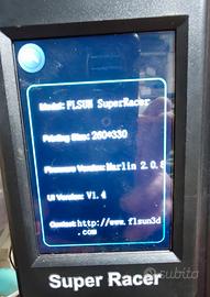 Stampante 3d fdm FLSUN SUPER RACER,stampato sempre e solo pla. Estrusore con ingranaggi in metallo,firmware aggiornato 1.4,piatto in pei per un'aderenza di stampa senza pari.La macchina con lo slicer Flsun non sbaglia un colpo.Ricambi vari,hotend,sonde,ugelli 0.4 ,brugole e manuali.
