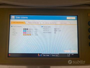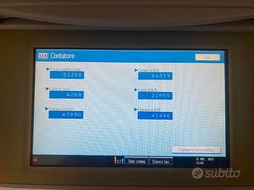 Fotocopiatrice Ricoh Aficio MP C2051 da testare, venduta senza garanzia in formula visto e piaciuto. Si accende e a volte a freddo non fissa bene il toner sul primo foglio, il cassetto dell'A3 non rimane chiuso.
