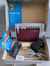 AVM FRITZ! Box 3490 International Modem Router Wireless, AC1750 Dual Band, ADSL2+, Fibra (VDSL), 4 LAN Gigabit, Modalità Router con WAN in LAN 1, 2 USB 3.0, Interfaccia in Italiano Perfettamente funzionante, completo accessori, manuale e di scatola.