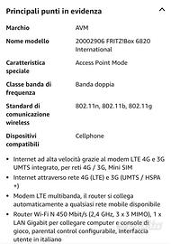 Piccolo e compatto, il FRITZ!Box 6820 si adatta a qualsiasi situazione. Indipendentemente dalla qualità della copertura di rete, il FRITZ!Box 6820 LTE raggiunge sempre la velocità ottimale, sia nelle reti mobili 3G, sia 4G. Grazie alla porta LAN Gigabit, musica, foto e video possono essere fruiti ad una velocità supersonica sulla rete domestica. Inoltre, il divertimento è assicurato grazie al Wi-Fi N ad alta velocità fino a 450 Mbit/s, il quale consente la navigazione internet wireless da Smart TV, computer, tablet e smartphone. Il supporto multibanda offre flessibilità durante i viaggi e consente al FRITZ!Box 6820 LTE di connettersi automaticamente a qualsiasi rete mobile disponibile.
