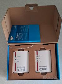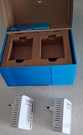 Powerline delle famosa Fritz! per far passare la linea internet all'interno dei cavi elettrici per poter collegare tramite cavo ethernet dispositivi (tv, PC, TV box, ecc.) troppo distanti per essere serviti dal wifi del ruter.