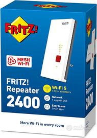 FRITZ!Repeater 2400 Edition International, Ripetitore - Wi-Fi Extender Dual Band Con 1.733 Mbit/s (5 GHz) & 600 Mbit/s (2,4 GHz), Mesh, Access Point, 1x Gigabit LAN, Interfaccia In Italiano
