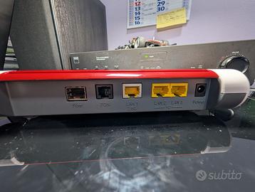 Funzionante in tutto e condizioni perfette . Lingua Italiana . Aggionarto al ultimo FritzOS 8.20 RIPRISTINATO DATI FABBRICA Ideale per la Fibra anche tramite ONT , funziona con tutti operatori .