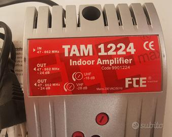 Il modello TAM 1224 è dotato di un ingresso, che incorpora filtri VHF/UHF, con regolazione indipendente rispettivamente 0-20 e 0-16 dB, dispone di 2 uscite simmetriche con un guadagno medio di 24 dB per uscita.