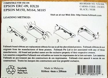 Fullmark N363BK nastro nylon nero compatibile con Epson ERC-09 per HX-20 M-160 M-180 M-190.