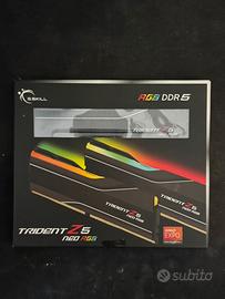 Vendo G.Skill Trident Z5 Neo RGB (32 GB — 2×16 GB, DDR5-6000 CL32-38-38-96, 1,35 V), kit di RAM di fascia alta. Estremamente performante grazie alla velocità DDR5-6000, con timings CL32 e profilo AMD EXPO abilitato.