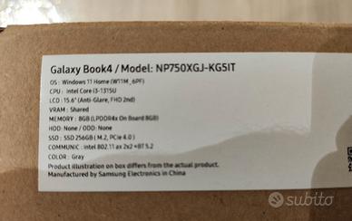 Galaxy Book4/Model: NP750XGJ-KG5IT NUOVO-SIGILLATO-NON APERTO OS: Windows 11 Home (W11M 6PF) CPU: Intel Core I3 10 Gen. 1315U LCD 15.6" (Anti Glare, FHD 2nd) Memory 8 GB Ram (LPDDR4X on board)