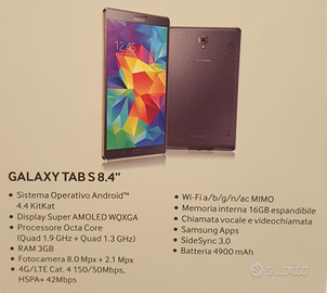 Galaxy Tab S con Wifi + 4G da 8,4" Compresa custodia, pellicola e penna. Usato in ottime condizioni.