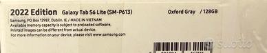 Samsung Galaxy Tab S6 Lite 2022 – 128GB + S Pen + Cover Vendo Samsung Galaxy Tab S6 Lite (modello 2022, SM-P613) colore Oxford Gray, memoria 128GB. Tablet in ottime condizioni, perfettamente funzionante. Ideale per studio, lavoro, Netflix e app quotidiane. ✔ Display ampio e luminoso ✔ S Pen inclusa (perfetta per prendere appunti e disegnare) ✔ Batteria con buona autonomia ✔ Versione 128GB (più spazio rispetto alla base) 📦 Incluso: - Tablet - S Pen - Scatola originale - Cover nera a libro Consegna a mano oppure spedizione a carico dell’acquirente. Scrivimi per qualsiasi info!