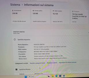 Disco rigido primario: SSD M.2 MVMe PCIe, 256 GB Solid State Drive (upgradabile a 512Gb con 30euro in più)