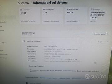 super PC Gaming / Grafica intel i7-10700, 32gb ram, ssd m2 1Tb wd blu, Svga Nvidia GeForce GTX 1650 4Gb, Win 11 pro