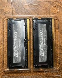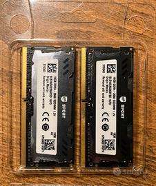 Performante kit di memoria RAM SO-DIMM da gaming per portatili DDR4-2666 32 GB (2x16) CL16 della Ballistix. Perfettamente funzionanti, testate una notte intera con Memtest86 risultando in nessun errore. Verificare compatibilità del proprio BIOS con la tecnologia XMP, altrimenti le RAM andranno a 2400 in JEDEC. Le memorie sono state utilizzate soltanto per 3 mesi su PC aziendale.