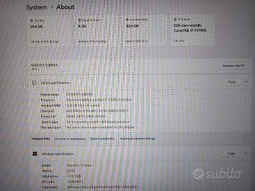 Vendo PC enthusiast custom, ottimizzato per prestazioni e temperature. CPU: Intel i7-12700K (12 core/20 thread) GPU: MSI RTX 3070 (8GB VRAM) RAM: 32GB DDR4 3200MHz (Perfetto per editing/workstation) Dissipatore: Liquido MSI AIO + 9 ventole ARGB PSU: Cooler Master MWE Gold 750W V2 (80+ Gold) Scheda madre msi Z690-A Pro (usb wifi incluso) OS: Win 11 Pro attivo/aggiornato Note: IO Shield custom DIY. Pasta termica nuova. PC silenziosissimo e pronto a qualsiasi prova.