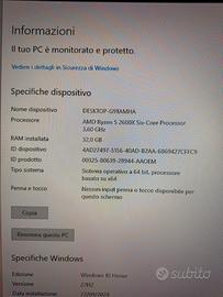 MSI GEFORCE RTX2070 S 32GB RAM SSD 480GB Processore AMD RYZEN 5 2600X 3.6GHZ WINDOWS 10 Per qualsiasi info contattatemi in privato. Solo ritiro in zona