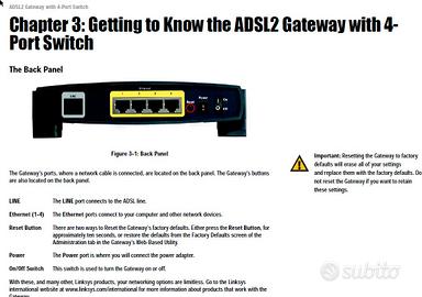 con l'utilità di configurazione basata su browser web. Con il Linksys ADSL2 Gateway con switch a 4 porte al cuore della tua rete domestica, sei connesso al futuro. Prezzo € 15,00 non trattabile, visto e piaciuto