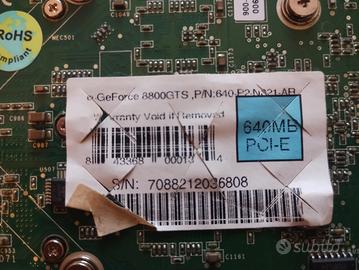 Scheda video alte prestazioni (2007) per build vintage. versione prodotta da e-vga con 640 MB di RAM ddr3.