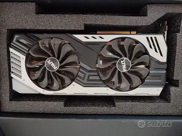 Palit NE6207SS19P2-1040J. Processore grafico / fornitore: NVIDIA, Processore grafico: GeForce RTX 2070 Super, Frequenza del processore: 1605 MHz. Memoria Grafica Dedicata: 8 GB, Tipo memoria adattatore grafico: GDDR6, Ampiezza dati: 256 bit. Risoluzione massima: 7680 x 4320 Pixel. Versione DirectX: 12.0, Versione OpenGL: 4.5. Tipo interfaccia: PCI Express X16 3.0. Tipo di raffreddamento: Attivo, Numero di ventole: 2 ventola(PROZESSOR