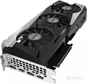 Gigabyte GeForce RTX 3070 Ti Gaming OC 8GB Caratteristiche tecniche: 2nd Generation RT Cores 3rd Generation Tensor Cores Powered by GeForce RTX™ 3070 Ti Integrated with 8GB GDDR6X 256-bit memory interface WINDFORCE Cooling System RGB Fusion Protection metal back plate La scheda è perfettamente funzionante ed è attualmente installata nel mio pc. Non è MAI stata usata per mining di criptovalute, ma solamente per gaming (la tengo anche leggermente undervolt perchè tanto le prestazioni sono sufficienti) Per chi fosse curioso delle prestazioni, gioco abitualmente con un monitor ultra wide 3440x1440 e a questa risoluzione i giochi vanno benissimo, qualità alta, no scatti no rallentamenti. Vendo per passaggio a serie superiore. Confezione originale inclusa.