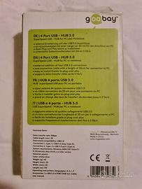 Questo hub USB 3.0 di Goobay offre quattro porte aggiuntive per collegare dispositivi come mouse, tastiere e unità flash al tuo computer. Supporta velocità di trasferimento dati fino a 5 Gbps, garantendo connessioni rapide e affidabili. Il design compatto e leggero lo rende ideale per l'uso sia in ufficio che in viaggio.
