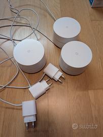 Vendo per passaggio a google wifi pro. Il Google Wifi (confezione da 3) è un sistema mesh progettato per eliminare i punti morti della casa, sostituendo il router tradizionale con tre punti di accesso che lavorano insieme. Ecco le caratteristiche principali: * Copertura: Le tre unità insieme coprono fino a 420 m² (circa 140 m² per ogni punto). * Velocità e Standard: Utilizza lo standard Wi-Fi 5 (AC1200) con tecnologia dual-band simultanea (2.4 GHz e 5 GHz). * Hardware: Ogni unità è dotata di un processore Quad-core, 512 MB di RAM e 2 porte Gigabit Ethernet (che possono fungere da WAN o LAN). * Tecnologia Mesh: Il sistema gestisce autonomamente il passaggio dei dispositivi da un punto all'altro (roaming) e seleziona il canale più veloce per evitare interferenze. * Gestione: Si configura e si controlla interamente tramite l'app Google Home, che permette di gestire il Parental Control, dare priorità a determinati dispositivi o creare reti per gli ospiti. * Design e Dimensioni: Ogni modulo è un cilindro compatto (diametro ~106 mm, altezza ~69 mm) dal peso di circa 340 g. disponibile per qualsiasi info o spiegazione.