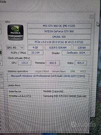Vendo scheda video MSI GeForce GTX 960 4GD5T OC (MS-V320) da 4GB perfettamente funzionante in ottime condizioni estetiche Ecco le caratteristiche della scheda grafica: PCI Express x16 3.0 Tipo memoria GDDR5 Dimensioni Memoria 4096 MB PCI Express x16 3.0 1 uscita DVI, una HDMI, 3 Display Port Graphics Engine Un connettore di alimentazione ad 8 Pin Supporta DirectX 12 Supporta Open GL 4.4 Dimensioni 273 x 130 x 37mm Peso 593g