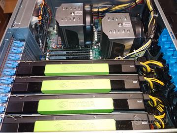 *** NOTA IMPORTANTE: Chiunque mi contattasse iniziando la frase con "È ancora disponibile?" verrà sistematicamente bloccato in eterno. Lo stesso accadrà a chi, chiedendo dettagli già presenti nella descrizione, darà prova di non aver letto completamente la medesima. *** Causa mancanza di spazio nel rack vendo GPU server marca SuperMicro modello CSE-747, perfettamente funzionante e configurato come segue: - MARCA: SuperMicro - MODELLO: CSE-747 (X9DRG-QF) - CPU: 2 x Intel Xeon E5-2650 - RAM: 192 GByte DDR3 - GPU: 4 x Nvidia Tesla M60 16 GByte GDDR5 - STORAGE: array con 8 caddy SAS/S-ATA + DVD-RW - HDD: 4 x HDD SATA WD Red 1 GByte - CONNETTIVITÀ: 2 x Gbit Ethernet + 1 x IPMI - ALIMENTAZIONE: AC 220V ridondata hot-swap 2 vie Il prezzo NON è trattabile. Le GPU NON verranno cedute singolarmente. NON spedisco: solo consegna a mano in Provincia di Udine. Le foto qui riportate si riferiscono all'oggetto reale e completo.