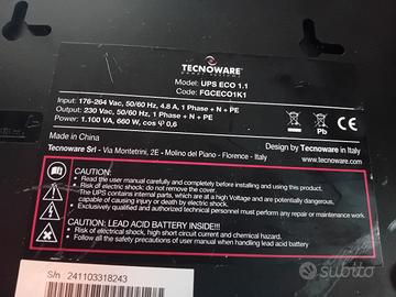 Vendo 2 gruppi di continuità senza batterie e cavi uno Apc monta 2 batterie il secondo Tecnoware che monta una Batteria ottimi per pc ps5 tv ecc... per mantenere la tensione se va via la luce