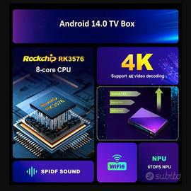 Sistema operativo Android 14.0 e chipset RK3576] Il TV Box H96 Max M9 funziona con il sistema operativo Android 14.0, con CPU Rockchip RK3576 Quad Cortex A72 + Quad Cortex A53, GPU ARM Mali G52 MC3.