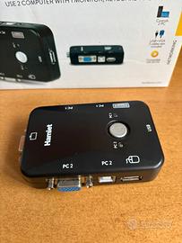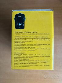 KVM Smart Control Switch di Hamlet consente di controllare due computer con un unico monitor, tastiera e mouse USB. Per passare da un computer all'altro basta usare il pulsante presente sul dispositivo. Lo Switch è molto facile da installare ed usare grazie alla funzione Plug and Play che non richiede driver o software; basta collegare la tastiera, il mouse ed il monitor ed iniziare a lavorare. Include due set di cavi per il collegamento dei PC.