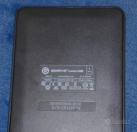Hard Disk G-Drive (HGST), modello esterno autoalimentato tramite cavo USB.