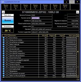 Hard Disk 3,5" SATA Seagate Barracuda ST1000DM010 1 TB, pochissime ore di lavoro, perfettamente funzionante