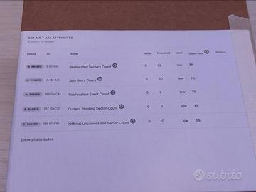 Hard Disk 4TB Toshiba, SATA, Interno. Perfettamente funzionante. SMART OK: fatto prima di spegnerlo, stampato sulla scatola e visibile in foto. Cambio per passaggio a disco più grande. Solo ritiro a Bologna, zona Mazzini (Lunetta Gamberini)