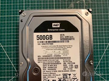Hard disk Western Digital modello WD5003ABYX, capacità 500GB. - Modello: WD5003ABYX - Capacità: 500GB - Cache: 64MB - Interfaccia: SATA - Classe Enterprise
