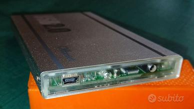 Hard disk case, con attacco USB. Nuovo. Marca Hamlet. Dimensioni: 12,5 x 7,5 x 1,2 cm.