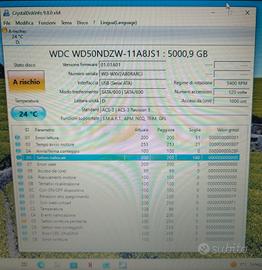 💾 Hard Disk Esterno 5TB WD – Funzionante – Prezzo Affare Vendo hard disk esterno da 5TB Western Digital, perfettamente funzionante e testato. 🔧 Dettagli: - Capacità: 5TB - Marca: Western Digital (WD) - Velocità: 5400 RPM - Interfaccia: USB 3.0 - Utilizzo: circa 1000 ore (poco usato) 🧪 Stato: Il disco è funzionante ma segnalo stato SMART “a rischio” per 1 settore instabile (visibile da test). Nessun problema nell’utilizzo normale, ideale per: - backup - archiviazione dati - uso non critico 💰 Prezzo: 50€ trattabili 📦 Consegna a mano o spedizione disponibile. 👉 Ottimo affare per chi cerca tanto spazio a poco prezzo!