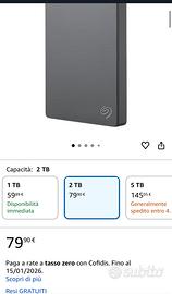 Hard Disk Esterno Portatile 2TB